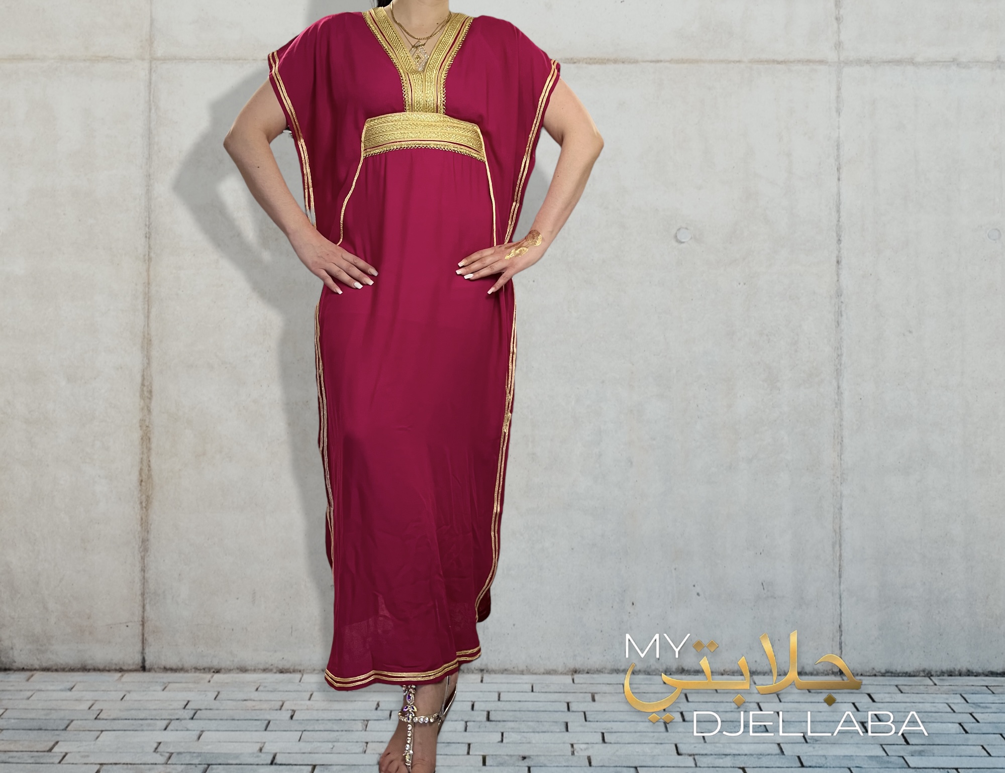 DJELLABA Gandoura Plastron Cerise Or MARRAKECH