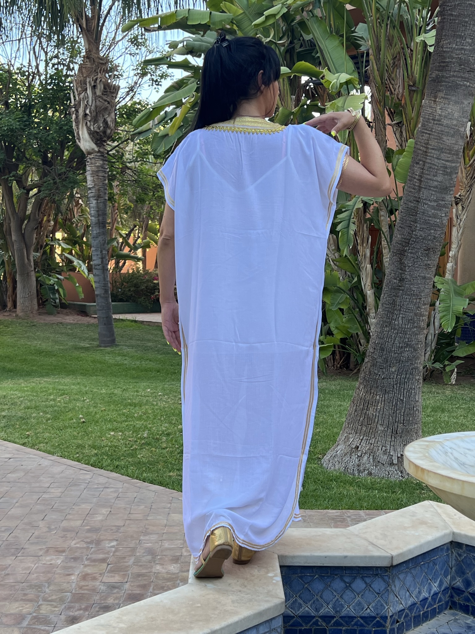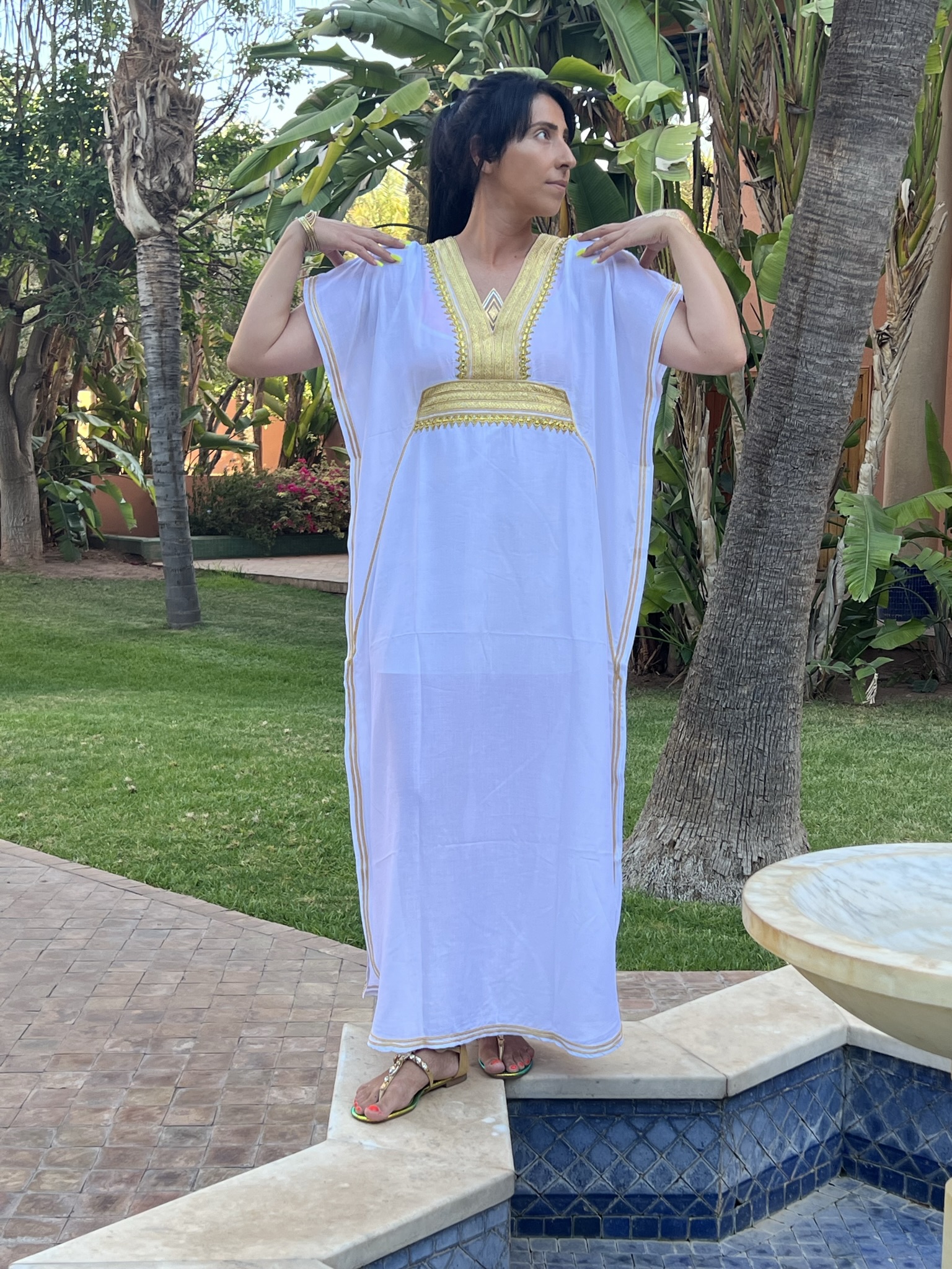DJELLABA Gandoura Plastron Or Blanc MARRAKECH